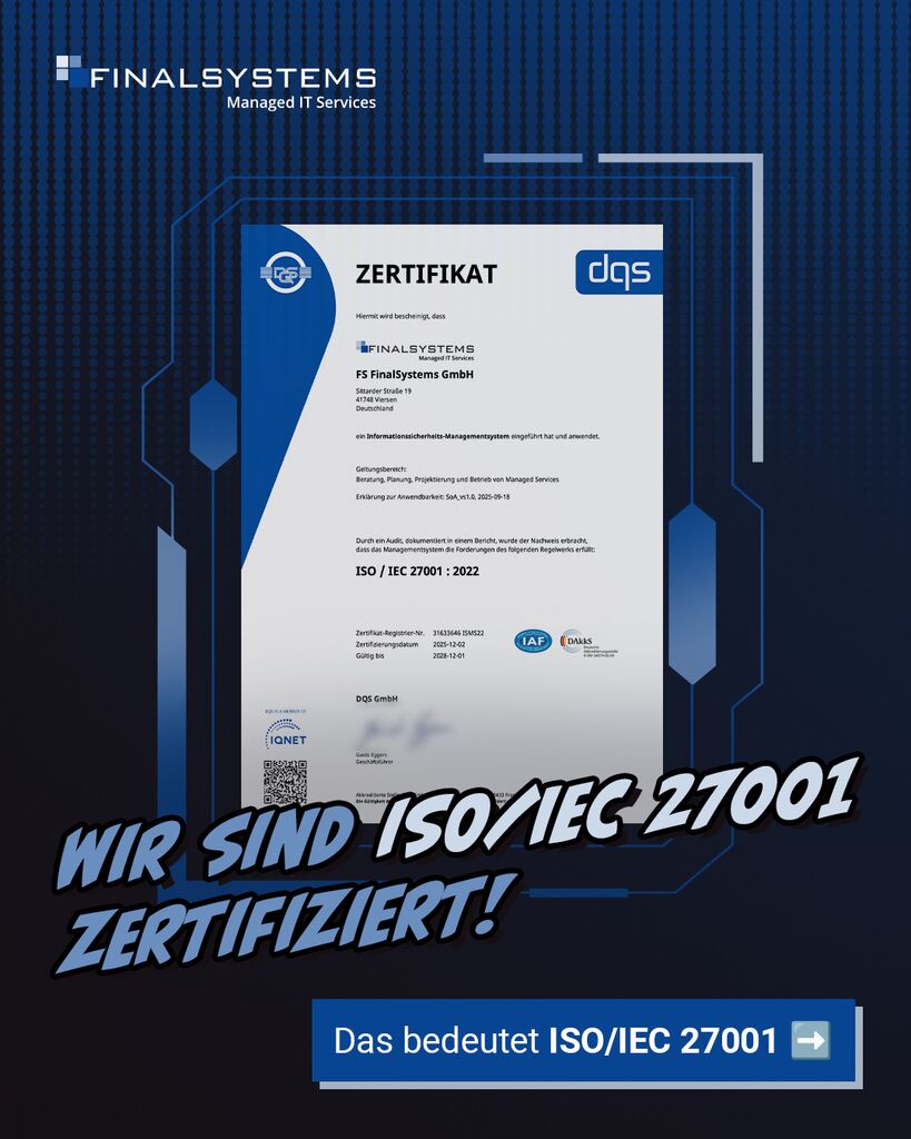 Final Systems ist seit über fünfzehn Jahren Spezialist für die IT von kleinen und mittelständischen Unternehmen aus dem Rheinland und Ruhrgebiet sowie vom Niederrhein. Es ist unser Anspruch, die IT unserer mittelständischen Kunden sicherer, zuverlässiger, verfügbarer, flexibler, mobiler und konformer zu machen.